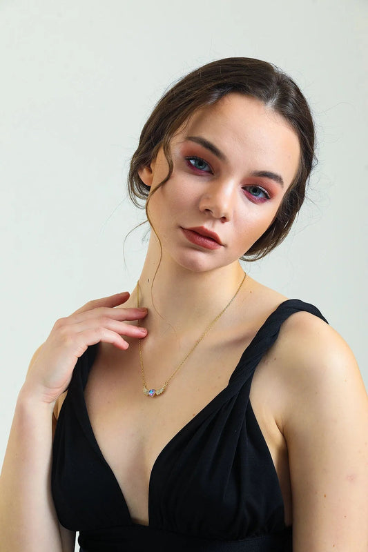 20% Tassarruf14 AYAR ALTIN KAPLAMA KALP TAŞLI MELEK KANADI KOLYE