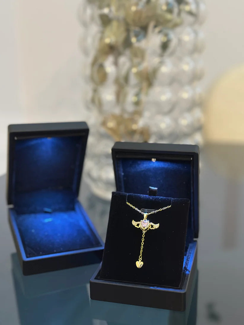 14 AYAR ALTIN KAPLAMA KALP TAŞLI MELEK KANADI KOLYE