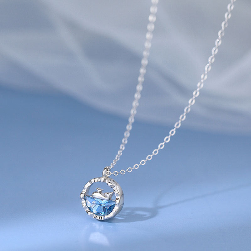 14 AYAR GÜMÜŞ KAPLAMA MAVİ BALİNA KOLYE